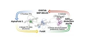 Researchers have found a complementary way of interpreting changes in non-coding DNA that may contribute to disease. Many genetic changes associated with human disease lie outside protein-coding genes, in nearby regulatory DNA that controls when and how genes are expressed.These changes can alter how transcription factors - the proteins that control when genes turn on - attach to DNA. Predicting the effects of such changes is difficult because most computer tools rely only on DNA sequence patterns and cannot show how a transcription factor physically interacts with DNA. 3D modelling methods Researchers at the Institute of Genetics and Cancer (IGC) tested whether new 3D modelling methods, such as AlphaFold 3, can help explain these subtle effects. By modelling thousands of protein–DNA pairs and comparing them to high-quality experimental data, they found that structural models can often tell which version of a DNA sequence a transcription factor prefers to bind. This approach provides clear mechanistic insight by showing how a single DNA change can strengthen or weaken binding and provides a complementary way to identify and understand non-coding variants that may contribute to human disease. Getting at the effect of genetic variation in the non-coding genome is complicated. If we can generate data to improve 3D modelling methods, they could be a useful new tool to use in conjunction with other methods. Professor Joe Marsh Group Leader, Institute of Genetics and Cancer Read the full paper in Nucleic Acids Research Joe Marsh Research Group Tags 2026 Publication date 12 Jan, 2026